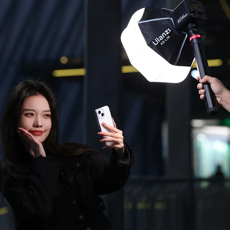 Ulanzi AS-L30 Softbox Soft Light Modifier mit Mini Bowens Mount ist kompakt und tragbar, einfach zu installieren und zu demontieren. Für Ulanzi LT028 40W und LT005 60W Videoleuchte